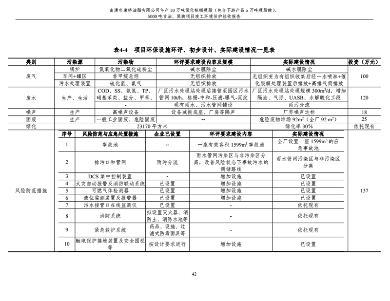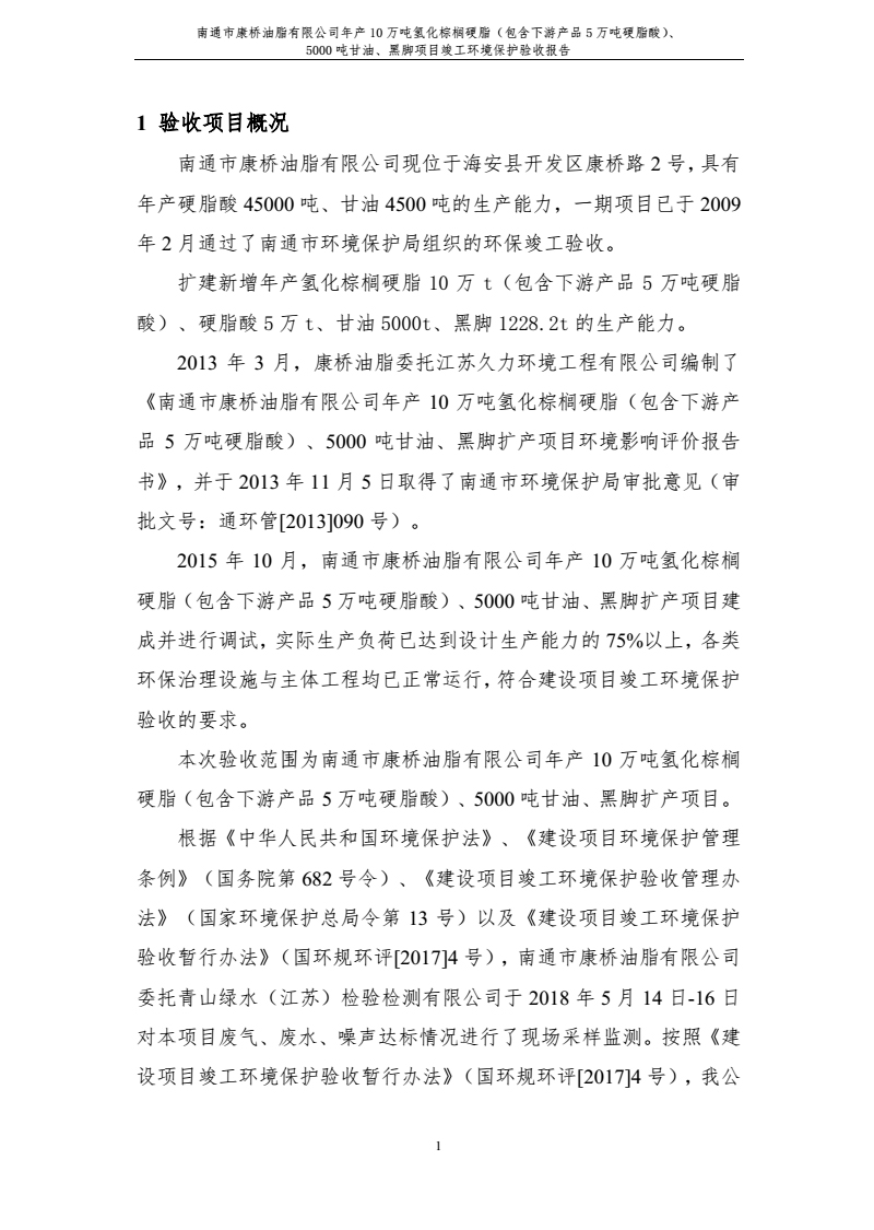 康橋油脂年產(chǎn)10萬噸氫化棕櫚硬脂、5000噸甘油、