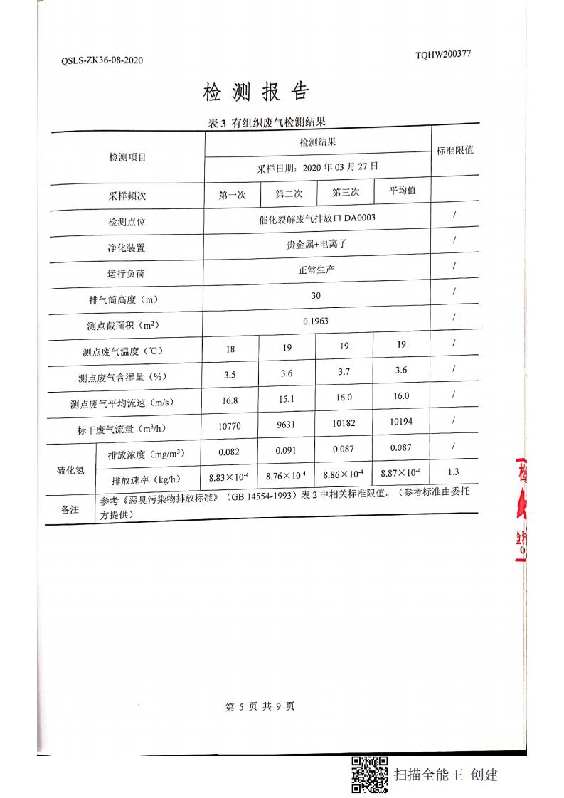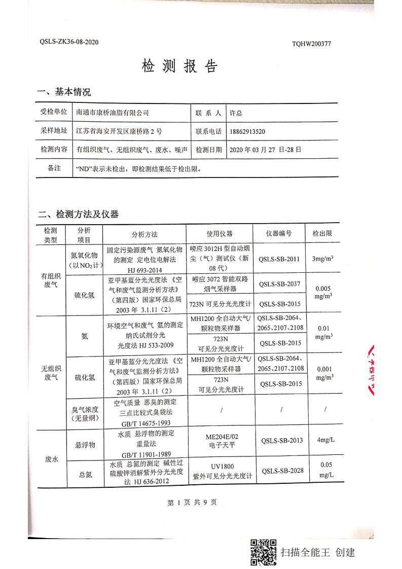 南通市康橋油脂有限公司4月份環(huán)境檢測報告