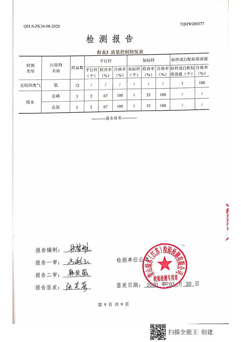 南通市康橋油脂有限公司3月份環(huán)境檢測報告