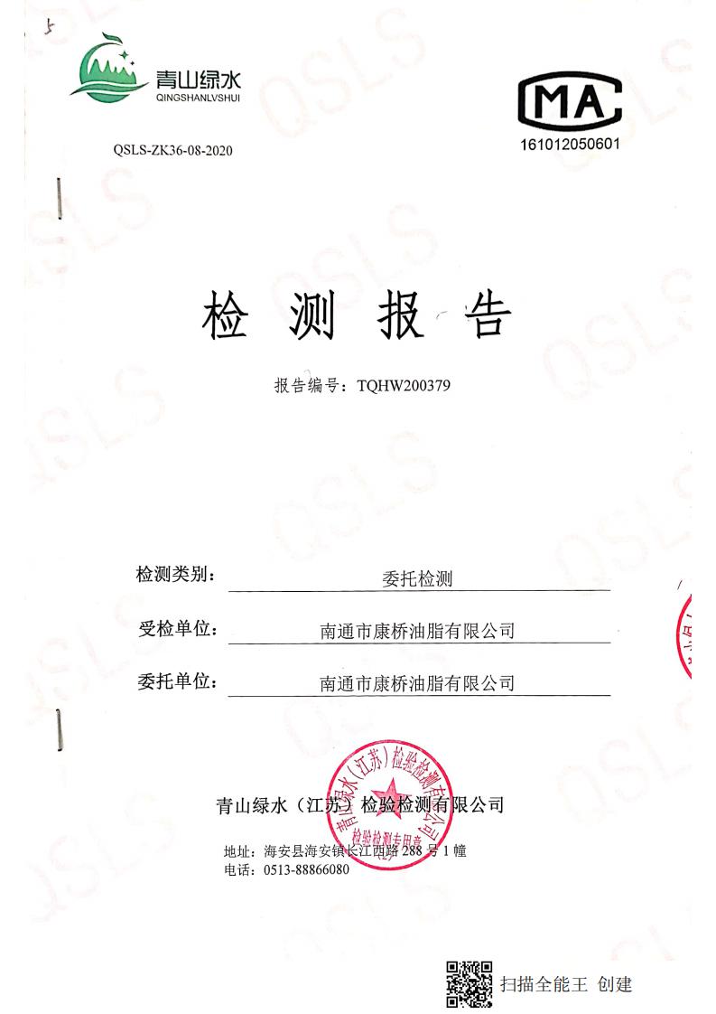 南通市康橋油脂有限公司4月份環(huán)境檢測報(bào)告